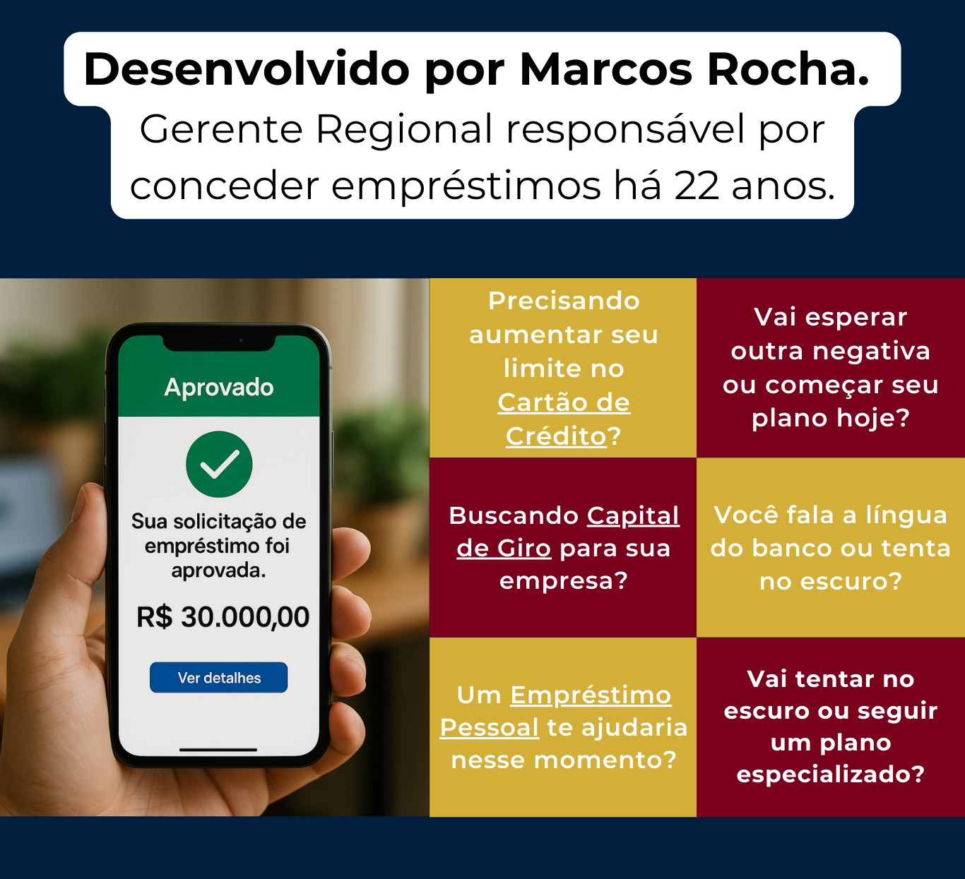 Nos meus 22 anos de banco, realizando milhares de aprovações (e reprovações) de empréstimos e financiamentos, entendi como o motor de crédito do banco funciona e como ele decide quem poderá receber empréstimos (ou não).